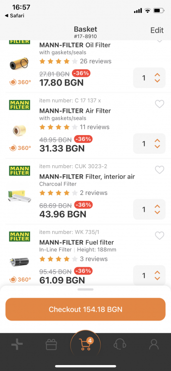 Shahinyan Posted July 15, 2021 Report Share Posted July 15, 2021 Ем да , напълно те разбирам , все пак е играчка , затова и струва пари удоволствието )) Преди и аз си сменях на моите коли масла и филтри в сервизи , но пък забелязах че на всеки 10к като ми се налага да давам толкова пари и започвах да правя компромиси за качеството на филтрите маслата и тн... а имайки предвид колко е лесна процедурата , заделяш си 1 час (това даже е много за по-опитните колеги , особено ако има канал около вас да не вдигаш колата на крик , че това губи най-много време ) някой уикенд и си купуваш най-добрите материали с отстъпката и без труда наистина излиза половината на обявената им сума За пример от тех-ко където и без това са добри цените като вземеш и с 40% отстъпка излиза по-евтино от аутодока , чийто екран бяхте сложили и който не е мерило защото там цените се променят всеки ден с поне 10 процента в посока .. трябва да дебнеш кога има отстъпки не знам си какво.... А реално както казаха колегите - сервиза освен за труда ти взима пари и за частите отделно - те взимат със същите 40 процента че и повече и то пишат търговска отсъпка 18% и си мислиш че е добра цената :ДSent from my SM-N975F using Tapatalk Link to comment Share on other sites More sharing options...